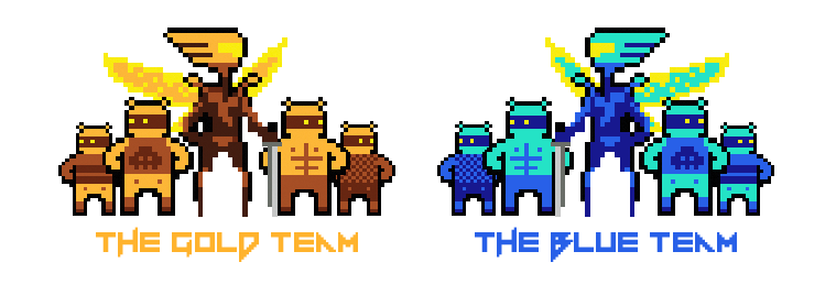 Killer Queen is a ten player arcade strategy game played between two teams of five players. The gold team plays on the gold cabinet and the blue team plays on the blue cabinet. Each team starts off with a "Queen" and four "workers". Workers can later be converted into warriors. There are three ways to win and endless ways to lose.