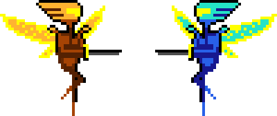 A worker unit can be transformed into a warrior unit by bringing a single berry to a winged gate. Warriors have the ability to fly and carry a sword that they can use to kill other units including queens. Warriors cannot collect berries or ride the snail. If a warrior dies they will respawn as a worker at the hive.